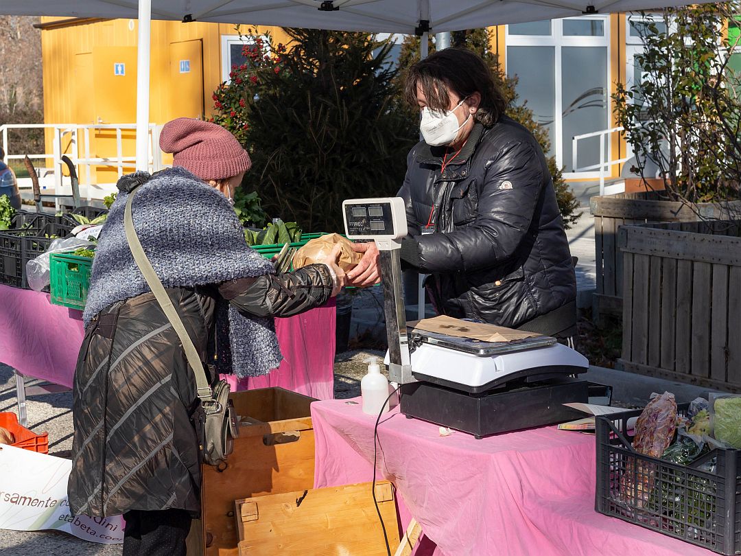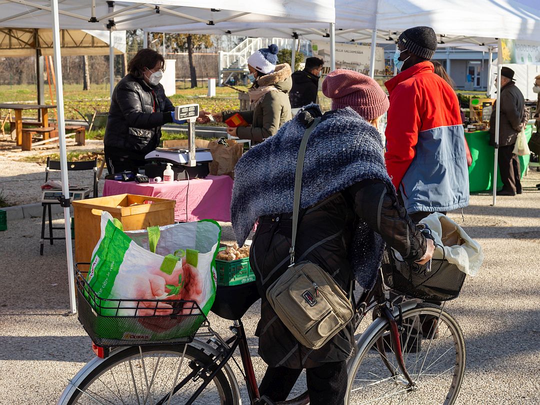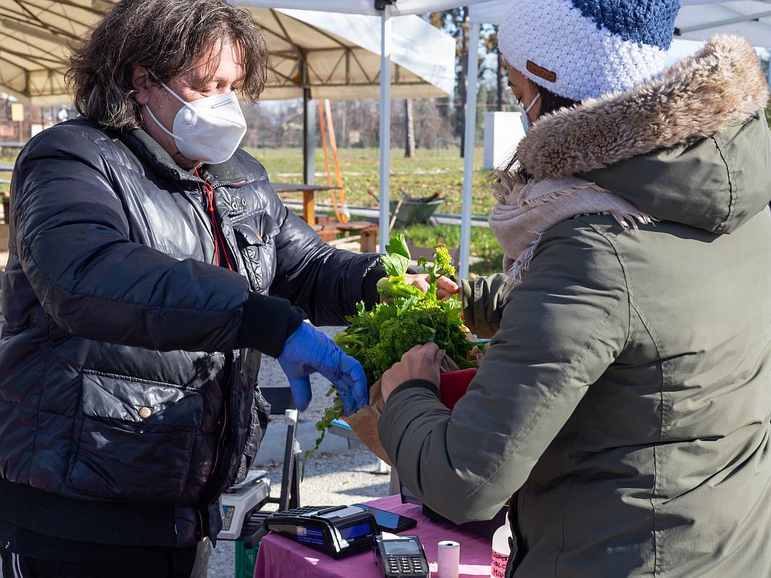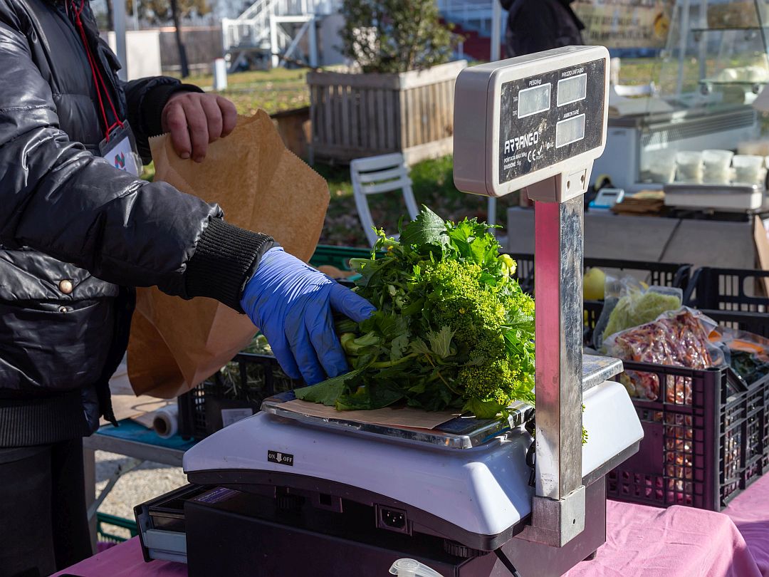 Ogni sabato mattina a Salus Space c’è il Mercato Contadino con i suoi banchi di frutta e verdura e altro ancora.