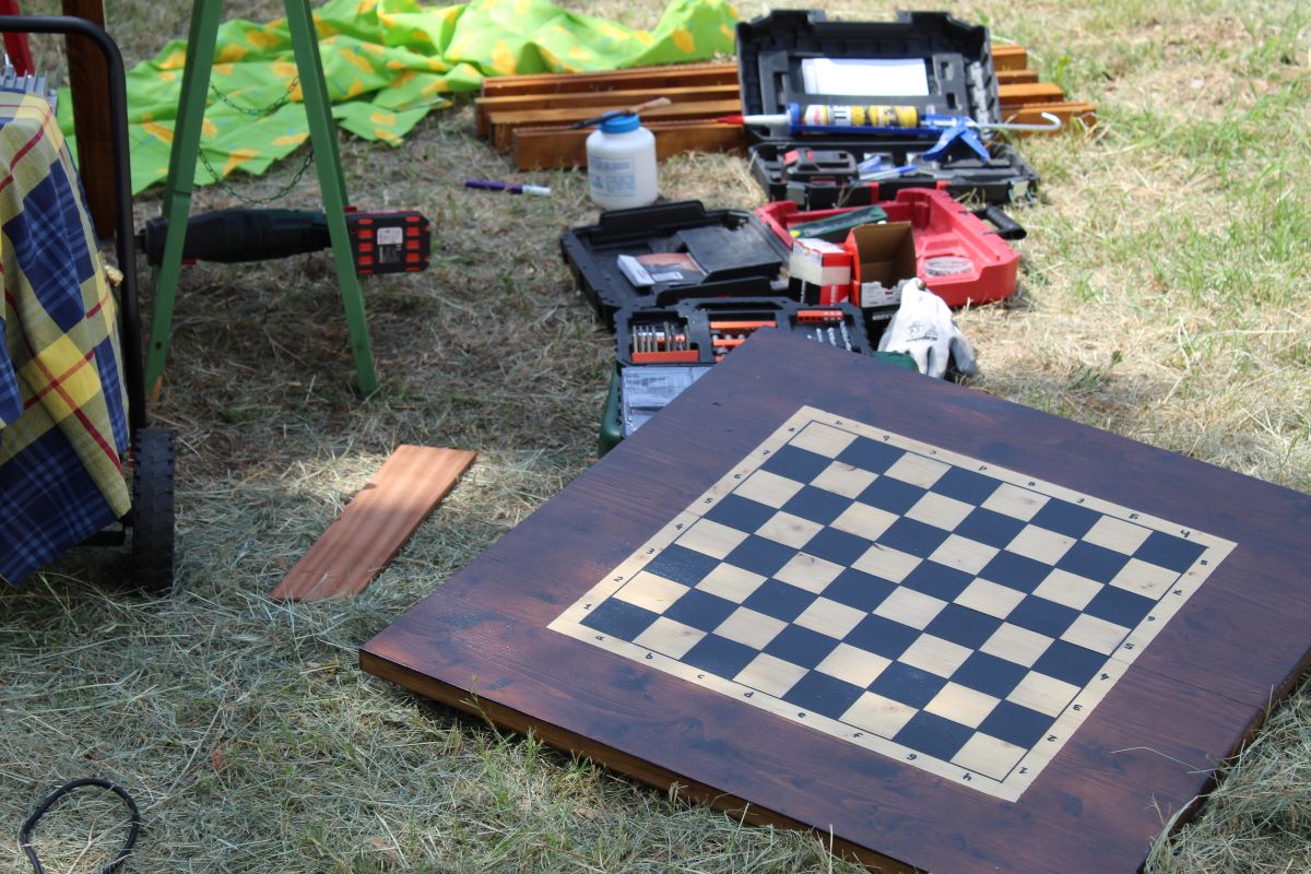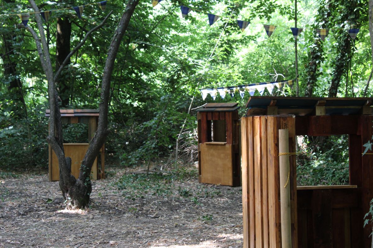 Con queste premesse il campo è partito, e fino al 19 agosto ha visto tanti volti e tante braccia lavorare insieme durante la mattina e il pomeriggio per ideare e costruire giochi e strutture di ogni tipo: un murales, un gioco dell’oca dipinto per terra, una scacchiera, un tepee, il nostro villaggio nel bosco, una mappa di Salus, migliorie al librorifero, la segnaletica per Salus.